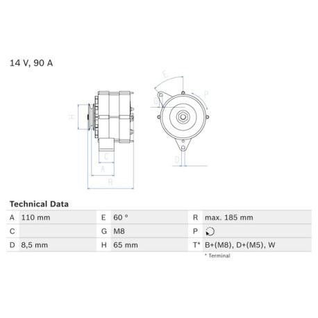 Morsetto: B+(M8),D+(M5),W