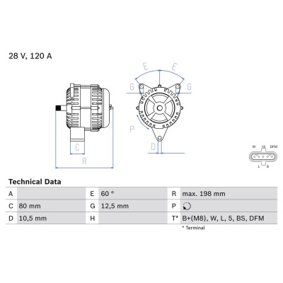 Alternatore-Corrente carica [A]: 120