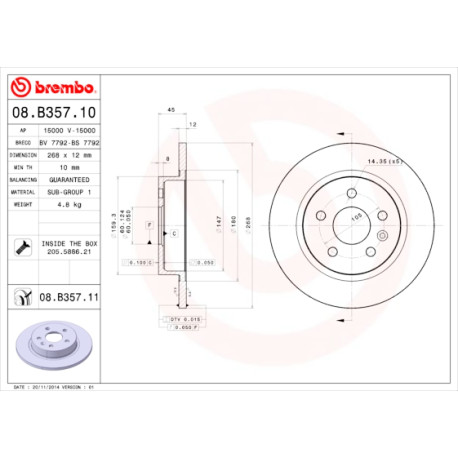 Set dischi freno BREMBO 08.B357.11 BREMBO 08.B357.11