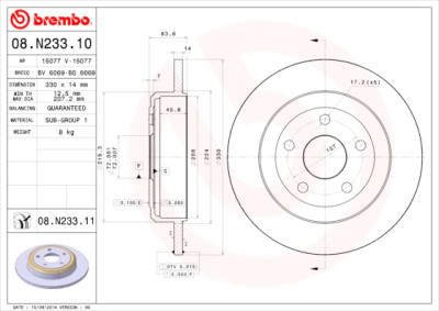 Set dischi freno BREMBO 08.N233.11 BREMBO 08.N233.11