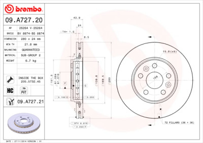Set di dischi freno BREMBO 09.A727.21